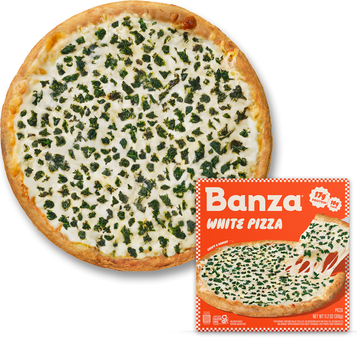 Topped with a creamy white sauce, spinach, and piled high with a blend of mozzarella, provolone, white cheddar, parmesan, and romano, this pizza will have you savoring every bite.