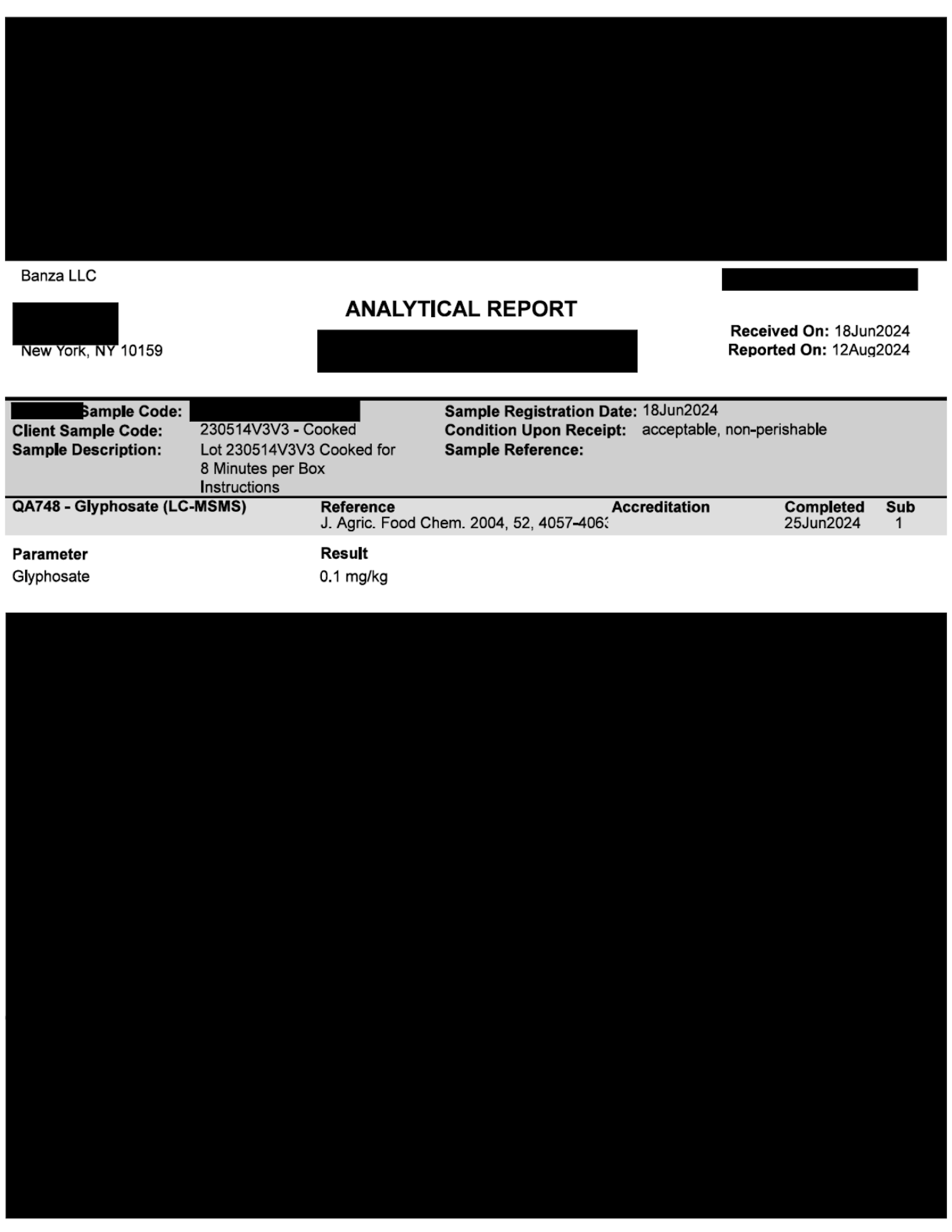 Una publicación reciente en las redes sociales afirmó que nuestra pasta contenía un cierto nivel de glifosato. Aunque el nivel declarado está por debajo de los estándares gubernamentales de EE. UU. y la UE, encargamos nuestras propias pruebas independientes a Eurofins, una empresa que cotiza en bolsa y líder mundial en pruebas de productos alimenticios. Eurofins analizó exactamente el mismo lote al que se hace referencia en la publicación de las redes sociales, utilizando metodologías adecuadas en el producto terminado cocido. El resultado de Eurofins arrojó 0,1 partes por millón, un 97% menos de lo que se afirmaba en la publicación en las redes sociales .